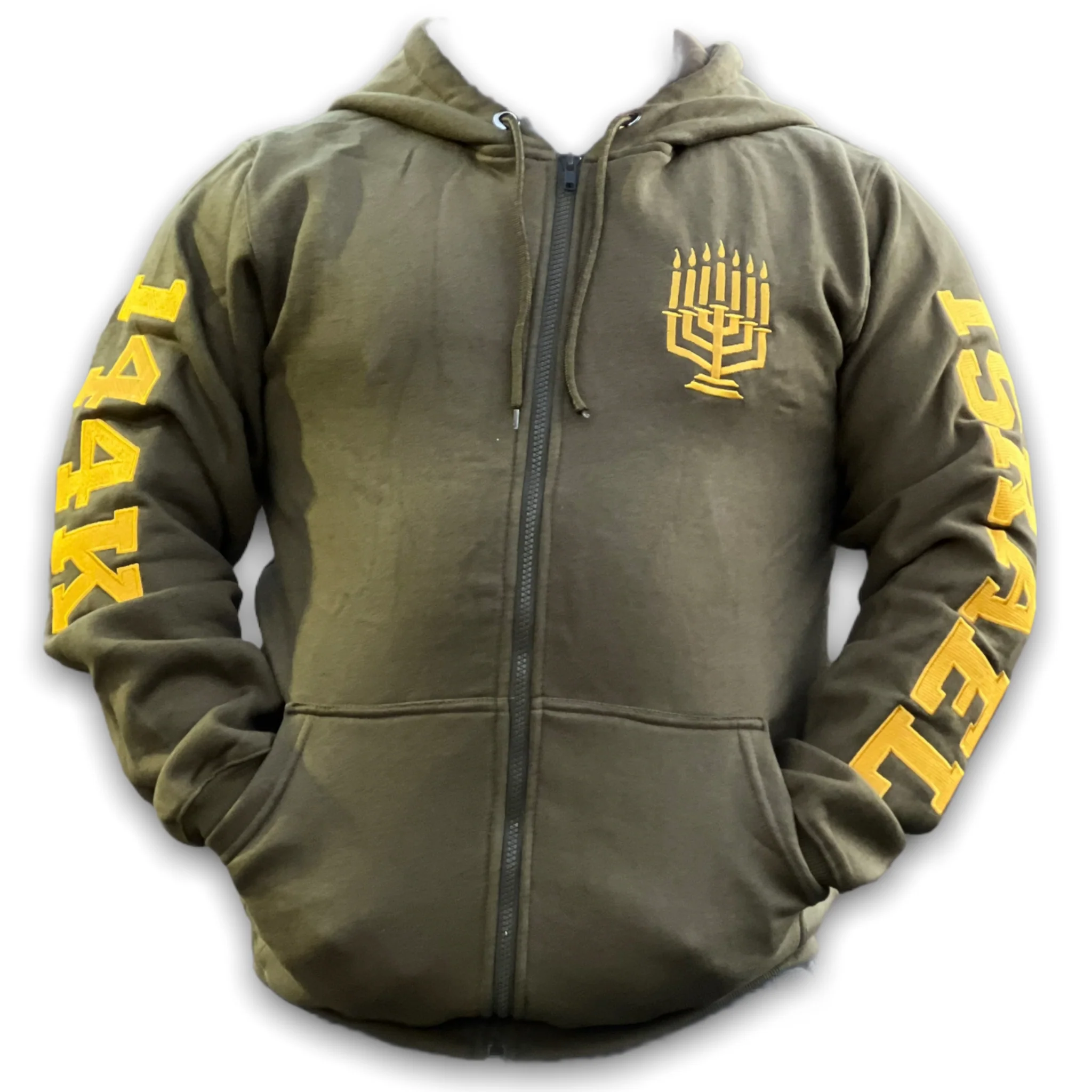 MEN'S ISRAEL EMBROIDED FRONT ZIPPER HOODED SWEATSHIRT